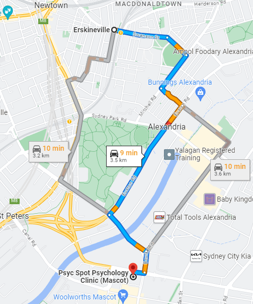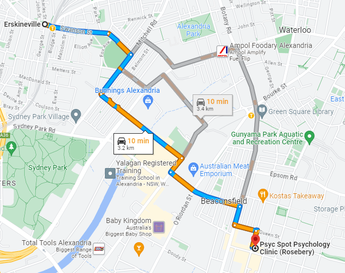 Many of our clients live in Erskineville, in the Inner-West of Sydney. Travelling to our psychology practices from Erskineville can be easy, since we are about 3km away and can be reached with a 10-15min drive depending on traffic. Public transport is also possible via bus 370 or even bus 355 then 309.