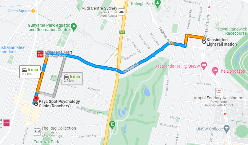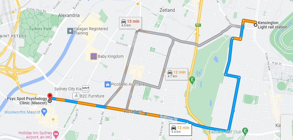 Many of our clients live or work in Kensington, which subsumes UNSW and is adjacent to Centennial Park. Our Rosebery psychology practice is especially close (being just 2.5km and thus a short drive away), but even our Mascot psychology clinic is not far away (since our two locations are only 1.7km apart).